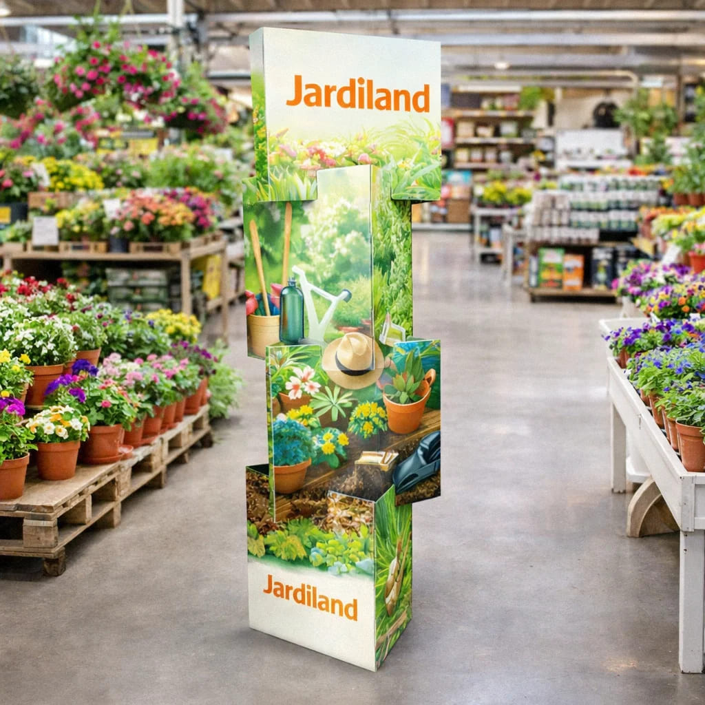 La base de ce totem carton est triangulaire, la hauteur et la largeur peut être définis selon vos besoins de surface de communication. A partir de 30 cm de large jusqu'à 100 cm pour le côté et jusqu'à 240 cm de haut. Le totem en carton triangulaire est un outil de communication efficace et économique. Il est très léger à transporter, peu encombrant car pliable et jetable car son impact écologique est faible. Fabriqué à partir de carton 100% recyclé il est aussi recyclable. ce produit se fabrique facilement sur mesure partir d'un exemplaire. Il peut aussi servir de support pour un écran, une arche ou une urne en carton.
