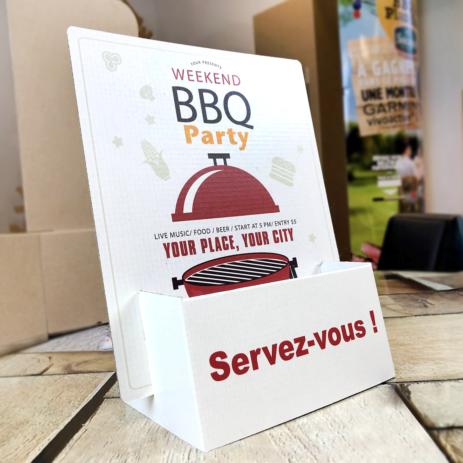 Présentoir en carton porte brochure.